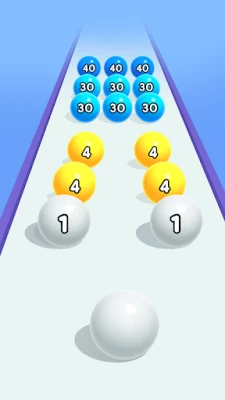 Swipe to steer, stay on the track, and merge with a ball of the same number. Each merge makes the ball bigger and changes color. Numbers start at 1 and combine up to 2560. Easy to play, tough to reach the goal.