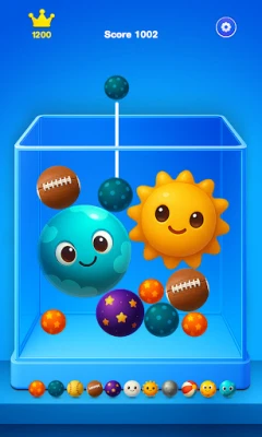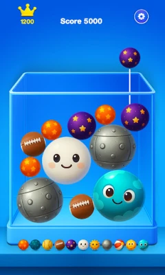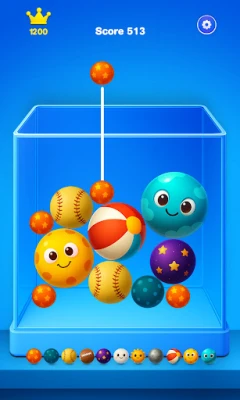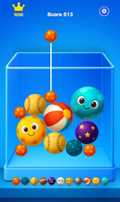 Tap the screen to release random balls that cascade into the box. When identical balls touch, they fuse into a new, upgraded ball with stunning visuals.