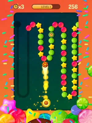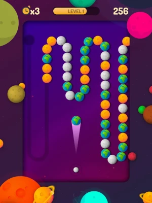 Shoot the ball to the line of balls. Three of the same color will explode. Clear the line before the first ball of the line goes in to the hole. Balls can bounce off the walls. Unlock awesome new maps with your score. Make combos and get SPECIAL balls.