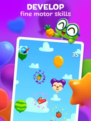 • Pop the balloons and learn colors! All the colors of the rainbow are flying by!