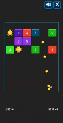 Your task is to remove all blocks with numbers by hitting them with a flying ball. In order to get rid of the block, you need to hit it with the ball as many times as the number on it shows. Collect bonus balls appearing along with the blocks and don't waste your moves. As soon as one or more blocks touch the bottom of the screen, the game will be over.