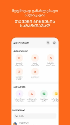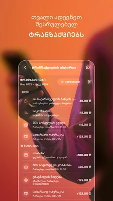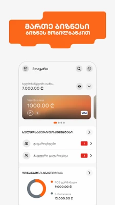 Using the application, you are managing the business related processes in a single space. For instance, you can find comprehensive information on your accounts and cards, trace the last completed transactions, sign the lists of documents, convert and transfer amounts, etc.