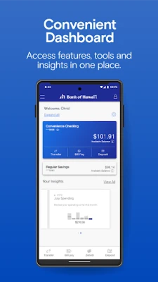 The Bank of Hawaii mobile app helps you manage your money, your way. Whether you’re checking your balance, depositing checks, paying bills or transferring funds, you can do your banking easily and securely—on any device.