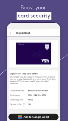 - Digital Card† - Boost your card security by using the dynamic CVV on your credit or debit card