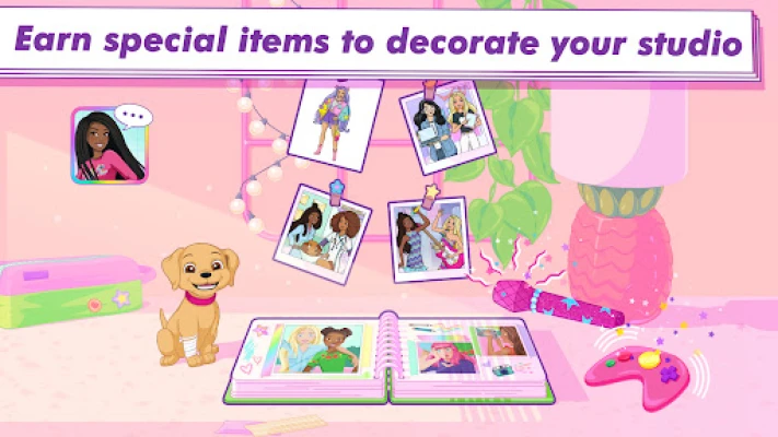 Join “Brooklyn” and “Malibu” on a colorful adventure in painting, sketching, designing and more! Explore an ever expanding bedroom of coloring books, tools, designs, locations and items. Bring Barbie’s memories to life with creative design challenges. Embark on a creative journey by customizing items and characters from your favorite Barbie movies and series, then save your designs as stickers and play with them in 2D locations. Earn unique rewards for completing design stories, and use them to decorate your personal studio. Download any drawing as an image to your device, so you can show it off to your friends and family.