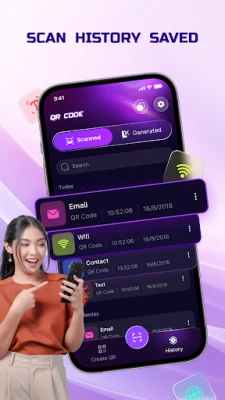 All reader qr code, scanner barcode reader and generated qr codes are saved automatically, so you can access them anytime