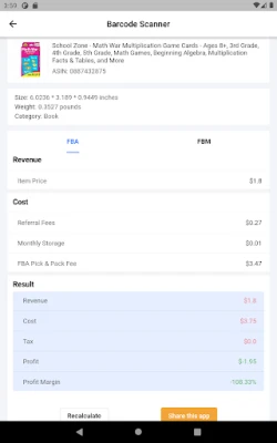 Barcode Scanner is an innovative retail arbitrage calculator that helps sellers with their business to simplify work and maximize profits.