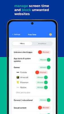 Access web filtering to allow or block certain websites to ensure your children are safely browsing online.