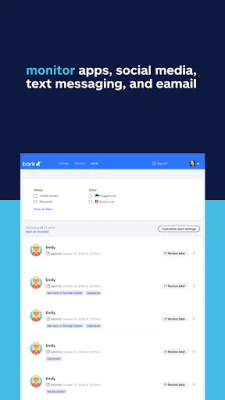 Monitor 30+ of the most popular apps and social media platforms, including text messaging and email, with alerts for cyberbullying, adult content, sexual predators, profanity, suicidal ideation, threats of violence, and more. Track apps, downloads, search and browsing history.