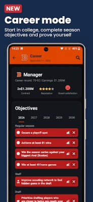 Manage every aspect of your team, from coaching and scouting to drafting and trading. Negotiate contracts and develop players to lead your team to victory.