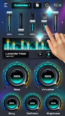 Volume equalizer and bass booster App with 5 bands can boost volume and adjust the sound quality. As you know, raising the volume but lowering the sound quality is a common problem with many Extra Volume Booster App.