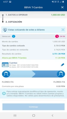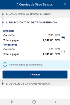 ● Realizar transferencias: Transfiere dinero entre tus cuentas, a otras cuentas del BBVA o de otros bancos del Perú.
