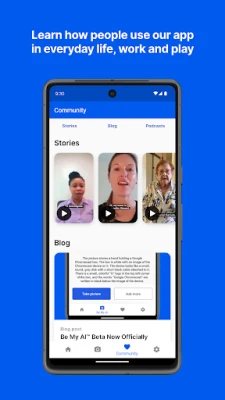 “Having access to Be My AI has been like having an AI friend by my side all the time describing things to me, giving me unprecedented access to the visual world and helping me be more independent.” - Roberto, Be My Eyes User