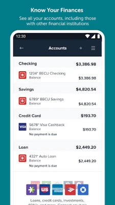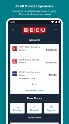 • Combine and view your BECU and non-BECU financial accounts in one place • Budget based on your spending, income, debt and expense history • Locate the nearest BECU, ATM or shared branching partner credit union • Transfer funds • Deposit checks • View accounts • Pay bills and view payees • Review Alerts • Updated design and expansive user experience