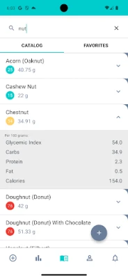 - Calculation of carbs and calories by product weight