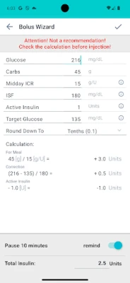 Automatically calculate the insulin dose based on glucose level and carbohydrates.