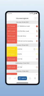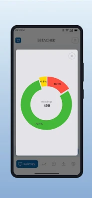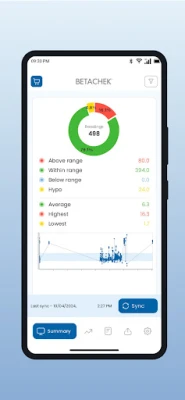 The Betachek Diabetes Management App automatically uploads test results from the Betachek C50 blood glucose meter and then graphs and analyses them: