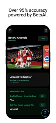 BetsAI is an advanced AI-powered sports prediction app designed to help you make smarter, data-driven football and sports predictions in seconds. By combining cutting-edge computer vision with deep learning models trained on millions of historical matches, BetsAI delivers accurate, real-time AI sports predictions across football and all major sports.