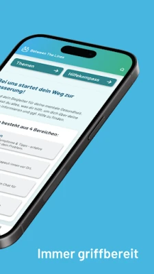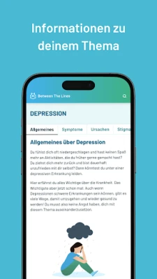 Unsere kostenfreie und werbefreie App Between The Lines beantwortet deine Fragen und zeigt dir wichtige Informationen zu verschiedenen Themen auf. Es ist normal, dass es einem mal nicht gut geht. Wichtig ist aber, dass man sich aktiv mit seinen Problemen auseinandersetzt – und dabei wollen wir dich unterstützen!