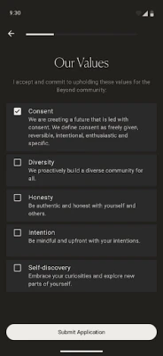 Apply to join our Beyond community by submitting an application. We frequently review applications, and you will get notified once you are approved into the Beyond community. Get someone to refer you to expedite your application. Your membership will unlock all the features of the app.