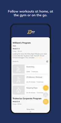 - Access training plans and track workouts - Schedule workouts and stay committed by beating your personal bests - Track progress towards your goals - Manage your nutrition intake as prescribed by your coach - Set health and fitness goals - Message your coach in real-time - Track body measurements and take progress photos - Get push notification reminders for scheduled workouts and activities - Connect to wearable devices like Apple Watch (synced to Health app), Fitbit and Withings to sync body stats instantly