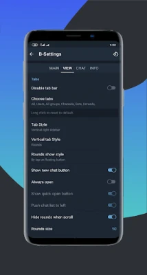 • Create your own chat tabs with icon support from png.