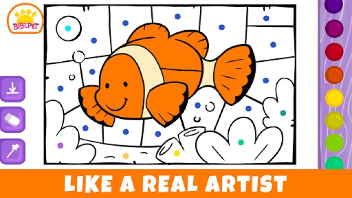 - 6 different types of games: Pixel, Tangram, Puzzles, Stickers, Free drawing and Coloring