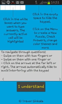 - Has a custom Keypad that does not get in your way but gives a convenient way to read the puzzle questions even on small screens