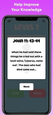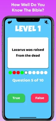The game is split into multiple different levels, each containing 10 questions. To unlock the next level you need to answer correctly 6 questions. For each question you must guess if the answer is true of false!