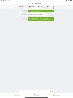 With bid72 you practice your bridge bidding and work on your partnership.The app is ideal to practice bidding with your partner(s), teacher(s) and coach(es) on any level (beginner, club, expert) and fit for any bidding system. The app allows you to reach contracts within the blink of an eye.