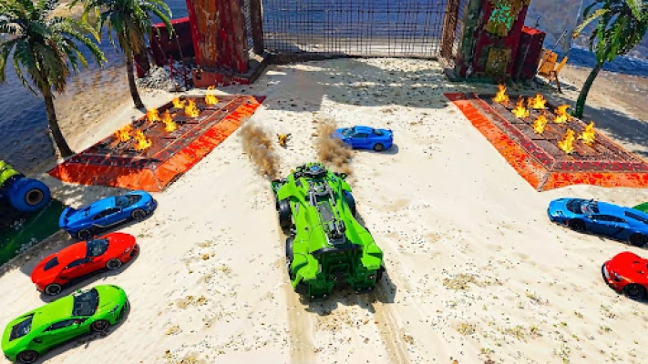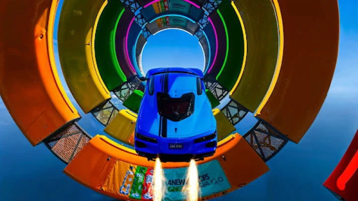 - Huge Jumps: Drive off big ramps and soar through the air.