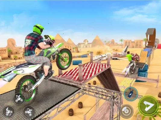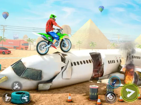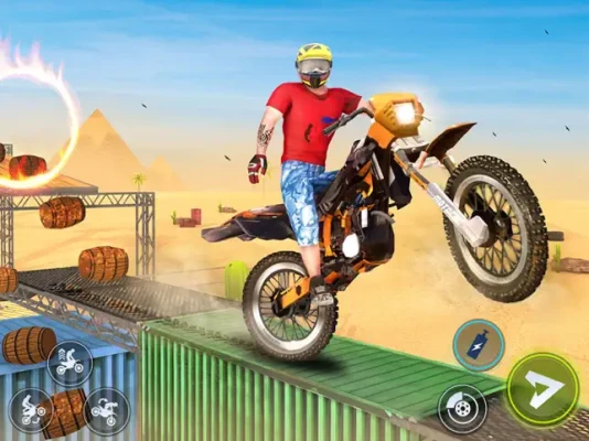 Ride through thrilling stunt environments like desert dunes, lava landscapes, snowy trails, and nighttime cityscapes. Perform incredible stunts over containers, rails, crushable cars, and fiery loops. Push your limits across diverse challenges.