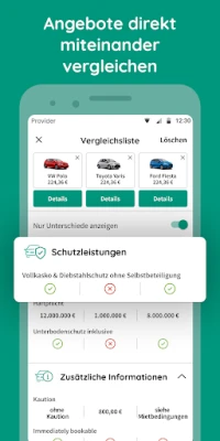 • Auf einen Blick vergleichst Du in unserer App bis zu drei Mietwagen-Angebote miteinander. Spare Dir das Wechseln zwischen den Tabs und finde Deinen Favoriten unter hunderten von Autos jetzt noch schneller.