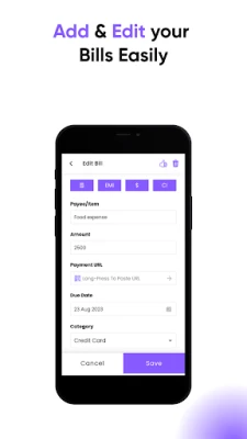 Manages your Bills and reminds you before the due date. Completely free App, No Hidden Charges