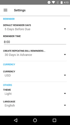 -By default, Bills Reminder will start to remind you of the payment 5 days before the due date. The number of days in advance can be customized for each bill but the default is set to 5 days. (You can change the default setting as well)