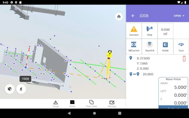 ◆ Optimized views to see total station, prism, selected point and auto-zoom 2D & 3D viewing modes when nearing a point