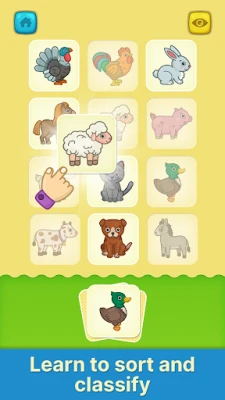 - 12 interesting topics to learn first words: farm animals, wildlife, fruits, vegetables, food, bathroom, home, clothes, toys, transport, shapes and colors.