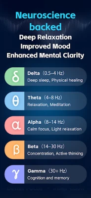 • Brainwave ranges including Delta, Theta, Alpha, Beta, and Gamma