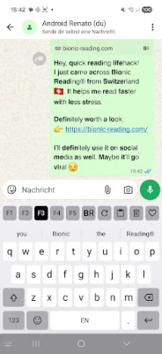• BR: Write a message and select one of the buttons from “F1–F5”. Use the “BR” button to confirm your Bionic Reading® method.