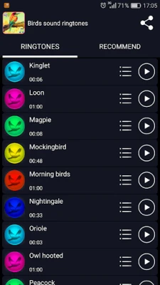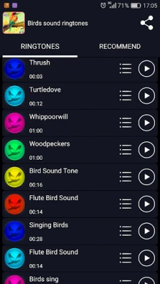 You can set the birds sound as your default ringtone, contacts ringtones or SMS tones!