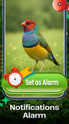 • Set any bird sound as your ringtone, alarm, or notification