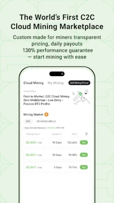 In April 2025, bit.com launched the industry’s first C2C cloud mining platform, allowing users to invest in BTC mining with low entry barriers. Miners can list their computing power, and users can purchase directly — with transparent pricing and daily settlements. No platform commission.