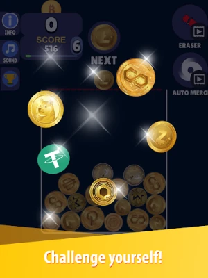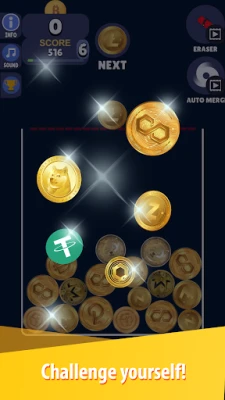Get ready for the thrill of coin merging with Bitcoin Merge! This exciting mobile game takes place in a world filled with crypto coins falling from the top. Your goal is to merge identical coins to earn points and achieve the highest score.