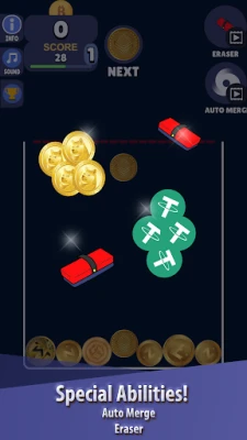 Equip yourself with special abilities that can change the course of your game. Automate the merging process with the Auto Merge ability or use the Coin Removal ability to clear out unnecessary coins. Various power-up options are also available to strengthen your strategy and boost your score.