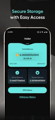 This app does not mine Bitcoin using your mobile device. All BTC mining is performed on cloud servers. Bitcoin mining results may vary depending on network difficulty, server load, and external conditions. This app does not guarantee fixed BTC income.