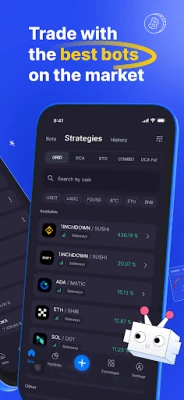 ─ DCA Bot. Invest in cryptocurrencies at multiple levels to buy at lower prices. Automatically buy and sell cryptocurrencies at the best time. Low-risk earnings in volatile markets.