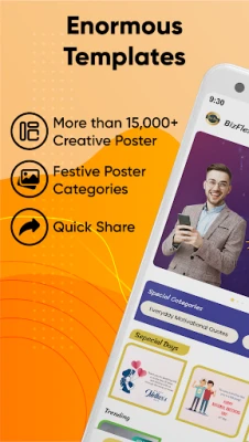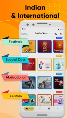 BizFlex has been developed to help every business, small or large, to grow its customer base and stay in touch with its customers through business marketing images and videos. Every day you get to explore different festival images that could be a key point to delight your customers. You can share social media posts on any occasion, whether it's an Indian festival or a Global Special Day.