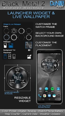 This completely customizable interactive HD Wear OS Watch Face, Clock Widget & Live Wallpaper brings a classic elegance to your wrist and Launcher. With animated gears you will be sure to catch the eye of every onlooker! Features include custom complications, battery levels, weather conditions, step counter, color picker & date information. A settings app will also be installed on your mobile device to configure the watch face for any look you desire. Select any color and create a completely custom look for yourself! Don't have a Wear OS watch? No Problem! You can use the clock widget or Live Wallpaper on your launcher!