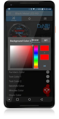 ✔ Color picker to select any color you like for the background, clock hands, text, & numbers