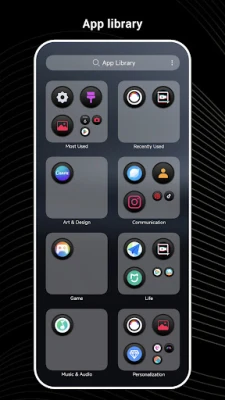 3. Black OS Launcher has App Library/Drawer feature; And you have the choice to don't show all apps in desktop, just show mostly used apps.